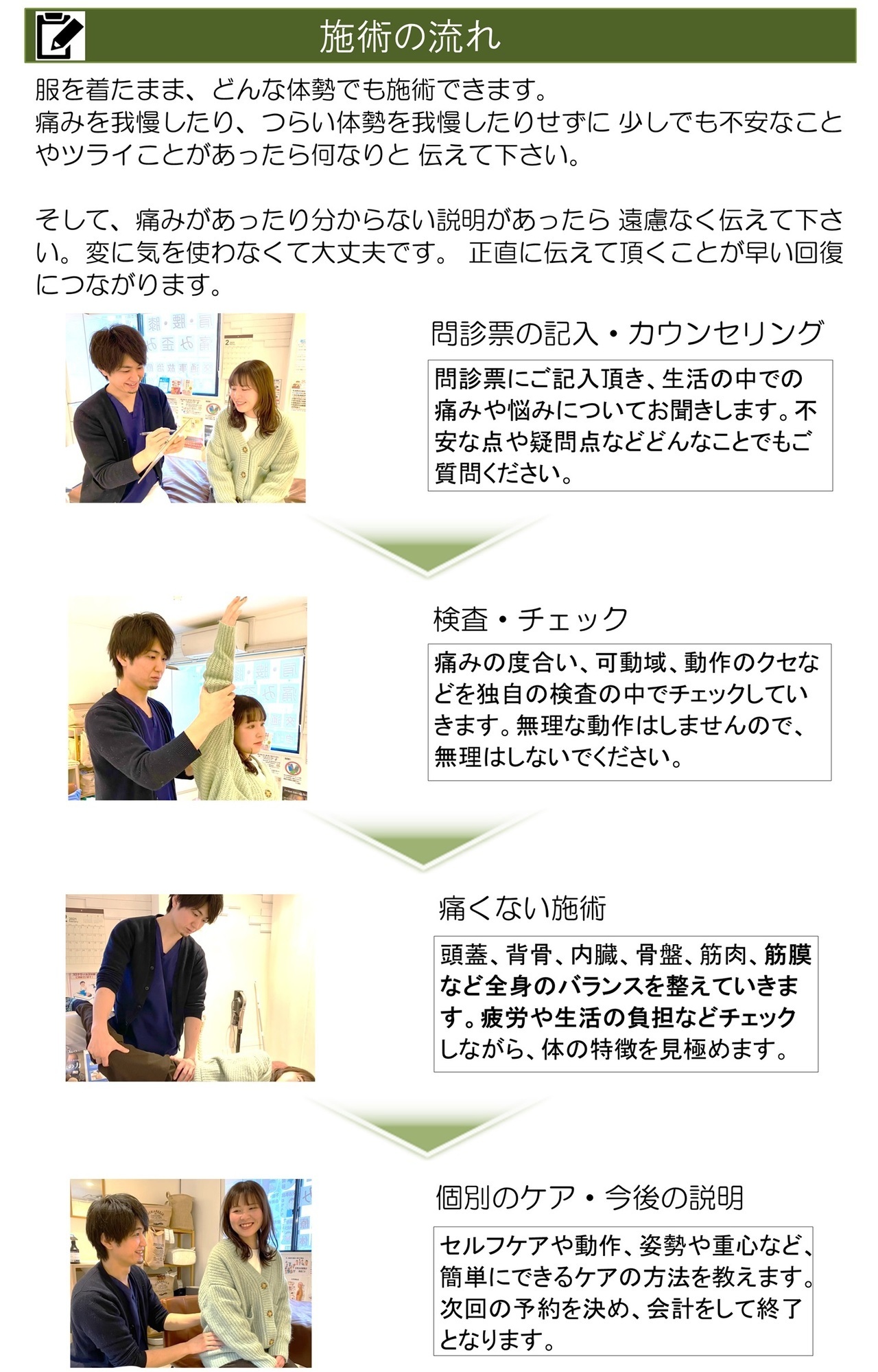 整体は体に触れる施術ですので、不健康な体は重い、硬い、動かない、違和感だらけです。