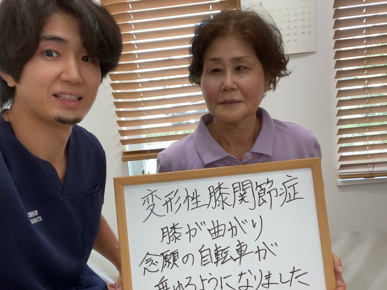 これまでは病院で膝にヒアルロン酸注射をしたり接骨院に通ったりしていました。良くなるどころか痛みがますますひどくなっていき不安でFUJI整体院さんに変えてみました。数回通い始めて膝の痛みも引いてきて諦めていた自転車に乗れるようになり、今では階段の昇り降りもスムーズになってきました!更に動ける身体になるためにお世話になろうと思います。大変感謝しております。